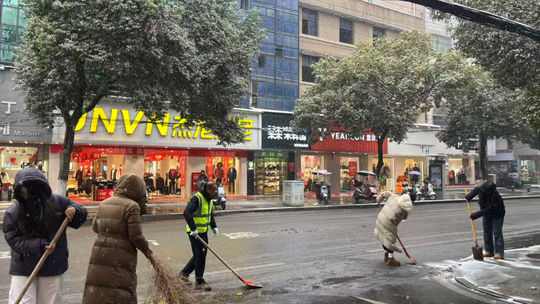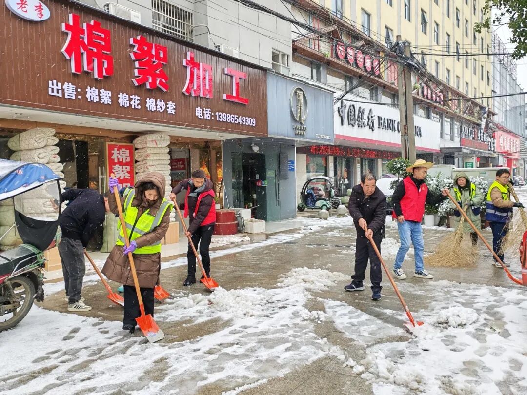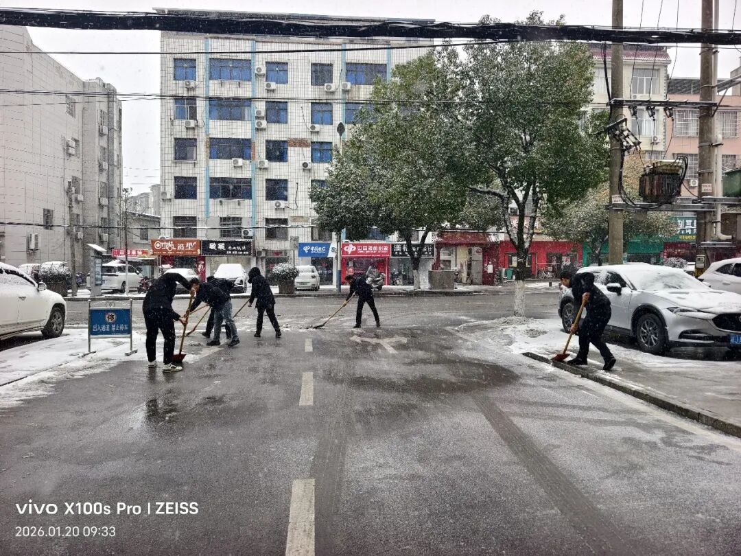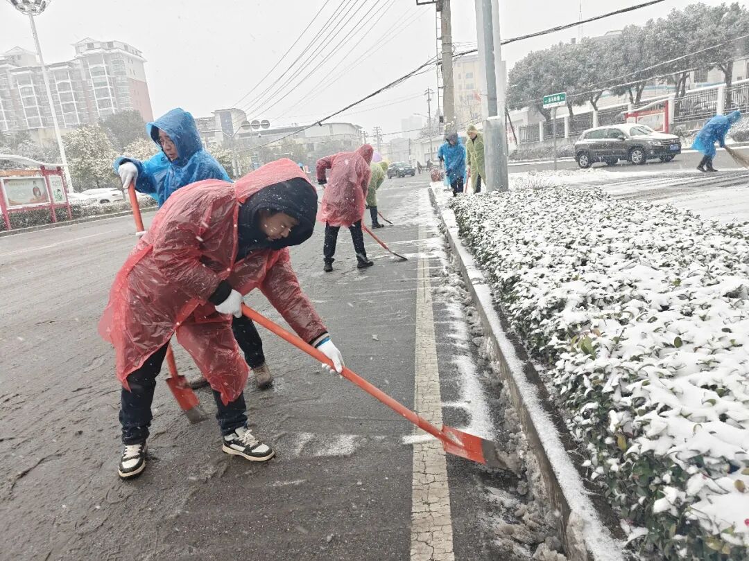 县城管执法局启动低温雨雪冰冻天气应急机制,全员上阵,加强主次干道、十字路口、斜坡、桥梁等重点区域铲冰除雪保障道路畅通工作;清理道路沿线断枝,巡查户外广告、施工围挡等设施,及时加固处置,消除安全隐患。组织400余名环卫保洁人员,清扫车8台,撒盐除雪车1台,对城区主干道和桥梁开展扫雪除冰活动,全力做好服务保障工作。