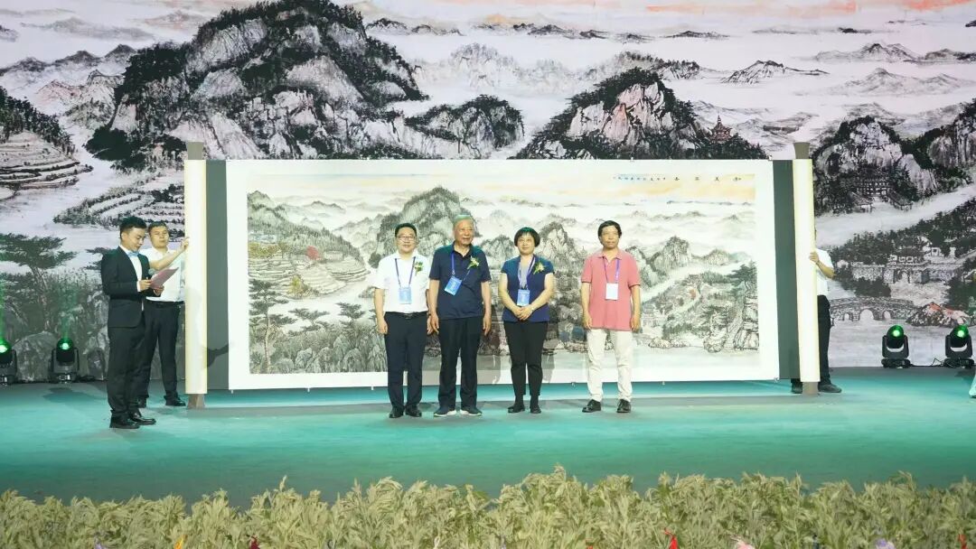 刘友凡向县委县政府赠送了历时一个月创作的《和美蕲春》山水画;胡安元代表县委县政府接受赠画,并回赠了收藏证书。
